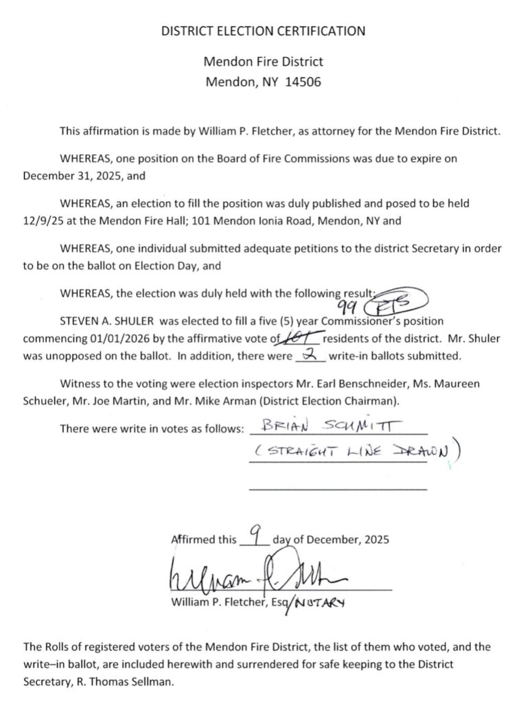 Congratulations to Steve Shuler on being elected for a five year term as Fire Commissioner on December 9, 2025